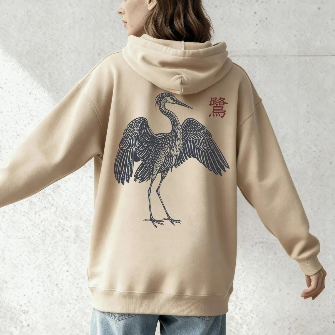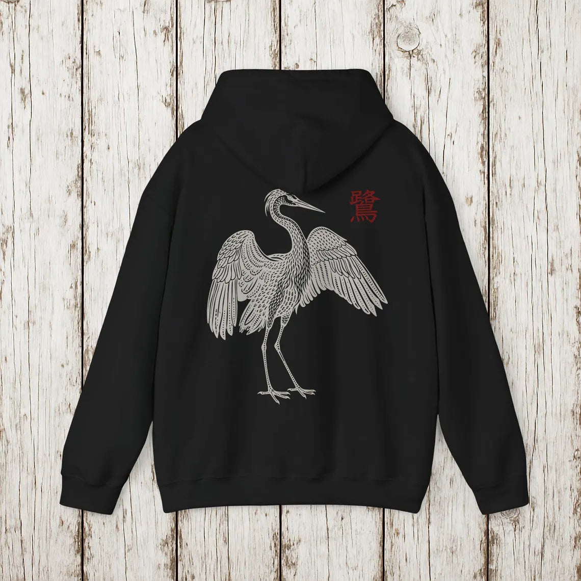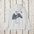 Japanischer Reiher Kapuzenpullover Unisex Hoodie mit Traditioneller Natur Kunst Zen Naturmotiv Minimal Design Stil