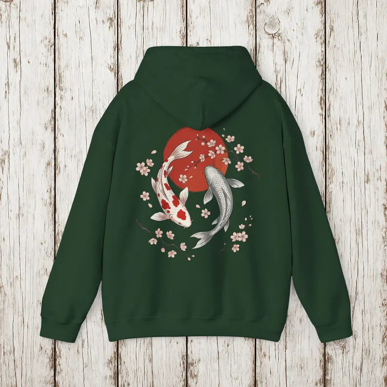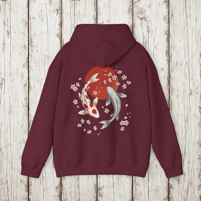 Koi Fish Hoodie Japanese Tattoo Art Sweatshirt, Sakura Cherry Blossom